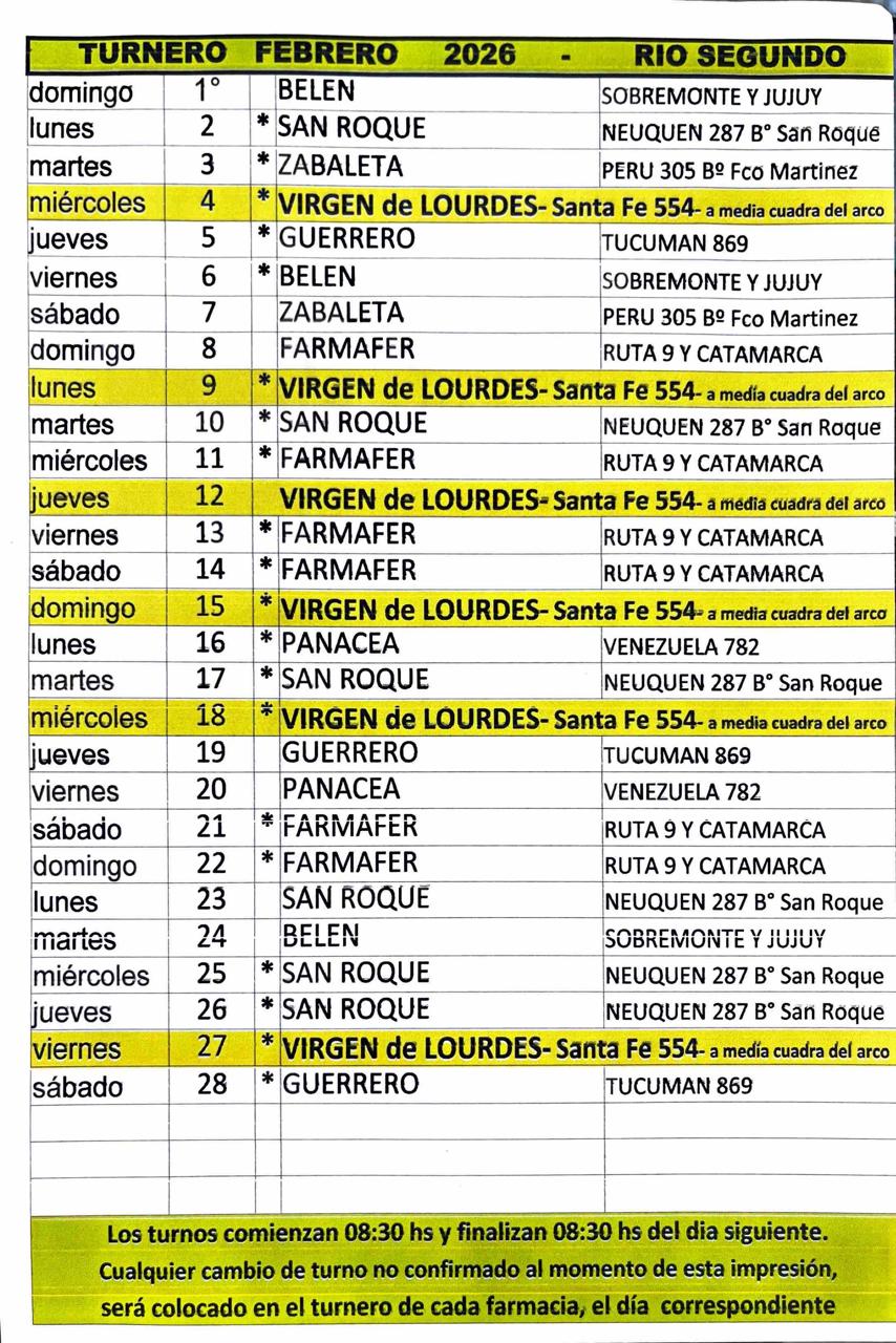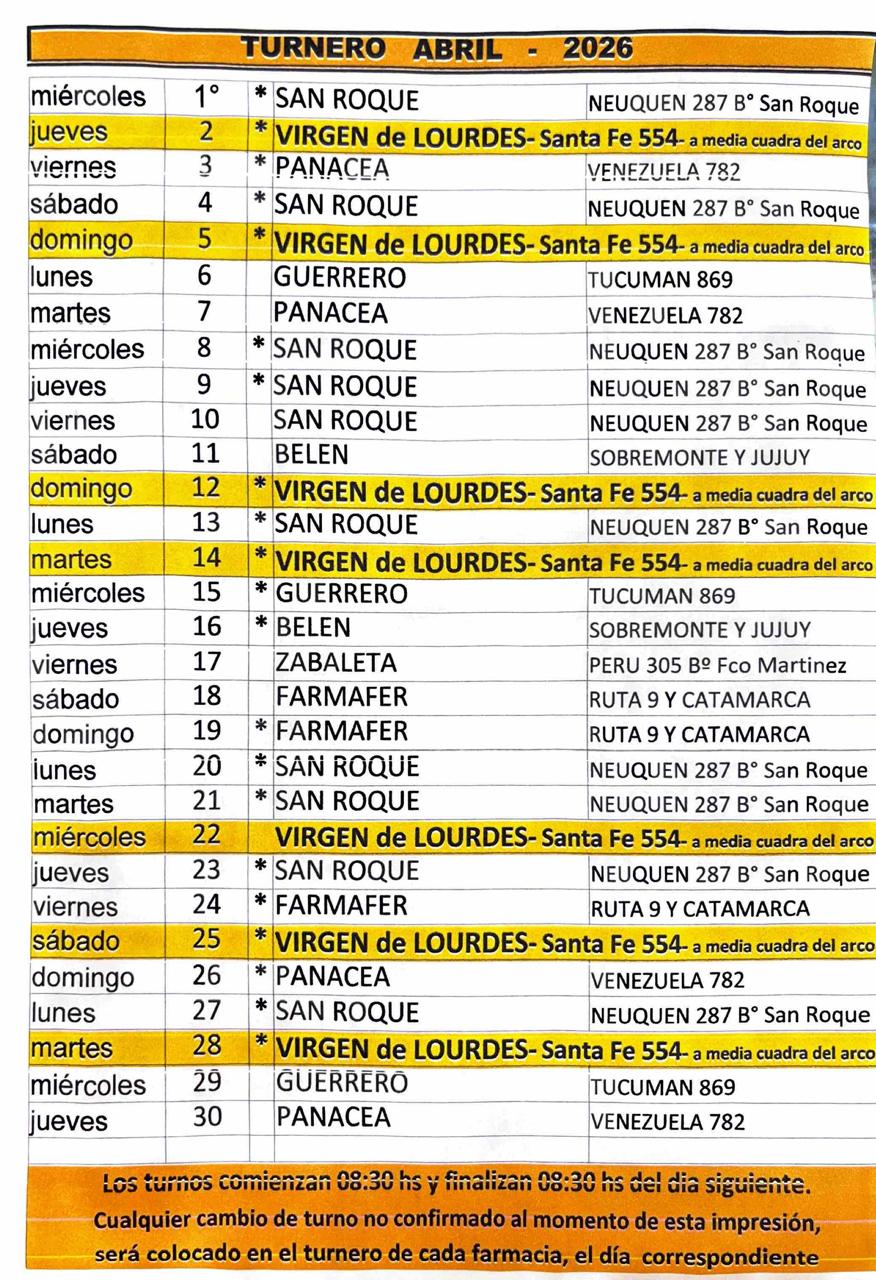 Turnero Gentileza Farmacia Virgen de Lourdes Santa Fe 554 casi Ruta 9 (a media cuadra del Arco)