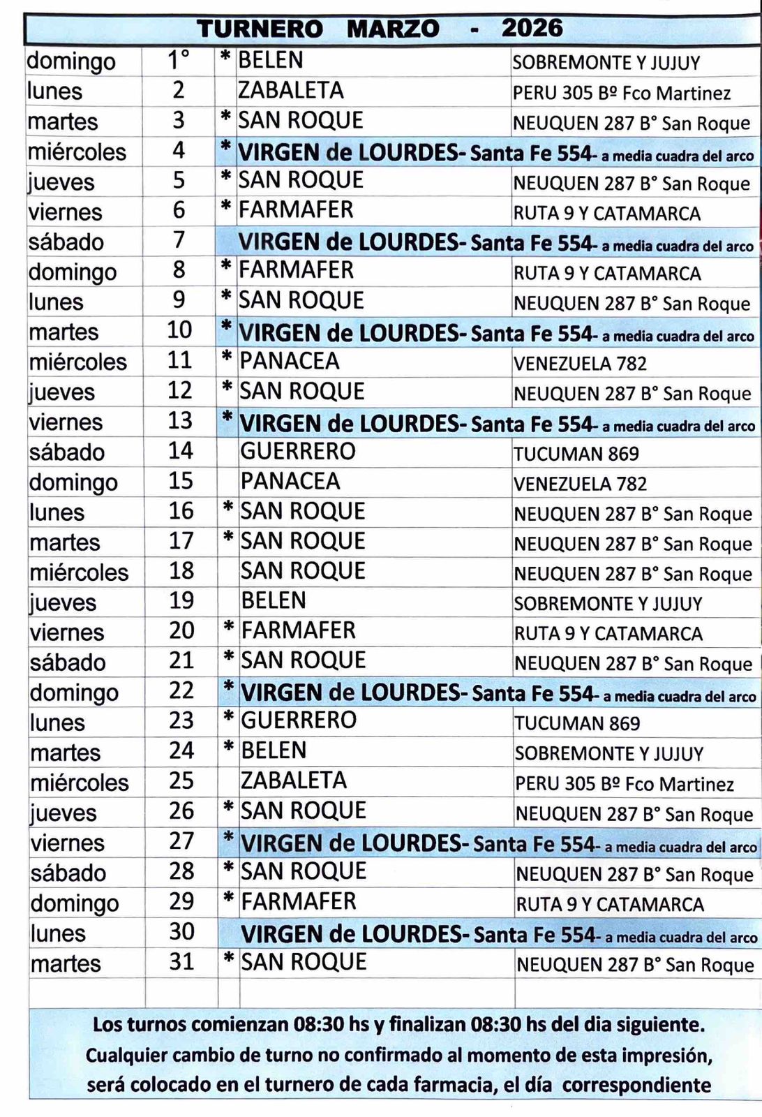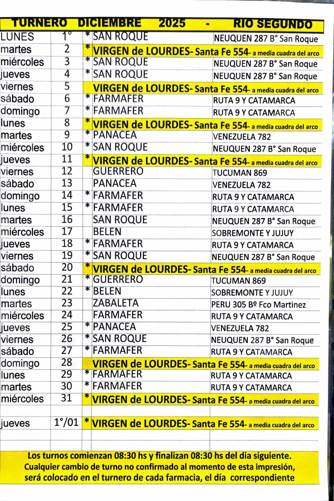 Turnero Gentileza Farmacia Virgen de Lourdes Santa Fe 554 casi Ruta 9 (a media cuadra del Arco)