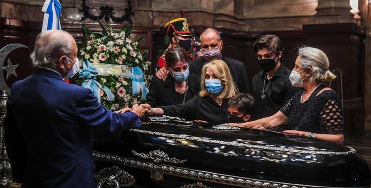 El funeral de Menem se celebra desde anoche en el Congreso, bajo la supervisión de Cristina Kirchner. La vicepresidenta fue la encargada de recibir el cortejo fúnebre en el Senado, donde acompañó a la hija del expresidente, Zulemita Menem, su exesposa, Zulema Yoma, su hermano, Eduardo, y sus nietos.
