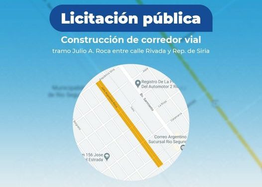 - Se convoca a interesados a presentar su propuesta respecto a la construcción de corredor vial, tramo calle Julio A. Roca entre calle Rivadavia y calle Rep. De Siria.