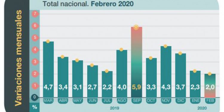 Febrero del 2020 la inflación continúo en baja con una variación mensual más chica desde Enero de 2018. Alimentos y Bebidas, el rubro con mayor incidencia, subió 2,7%.