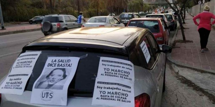 La Unión de Trabajadores de la Salud (UTS) y la CTA Autónoma realizaron en la tarde de este jueves una “Caravana del equipo de salud” en reclamo contra el recorte de jubilaciones y la judicialización de los médicos del geriátrico de Saldán.